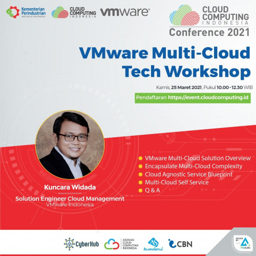 VMware Multi-Cloud Tech Workshop Kamis, 25 Maret 2021, Pukul 10.00 - 12.30 WIB Pendaftaran https://event.cloudcomputing.id